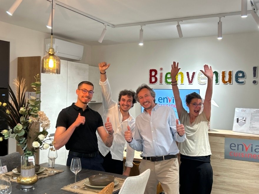 Découvrez l’ouverture de notre nouveau magasin Envia Cuisines à Nogent-le-Rotrou ce jeudi 12 juin ! Jean-Philippe Fauquet, Charlène sa Responsable des Ventes et ses deux concepteurs vendeurs sont prêts à
