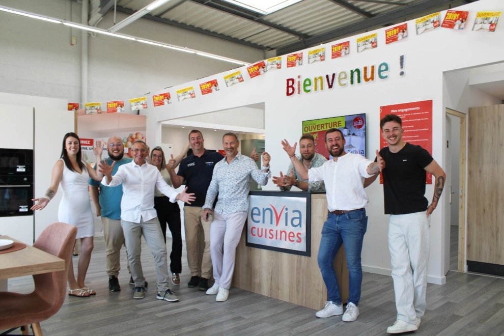 Jacques BEDUN et Patrick GRANGE, co-dirigeants de la marque, sont présents sur les lieux de l’ouverture pour soutenir et accompagner ce beau projet. Laura Adhérente du magasin de Sablé-sur-Sarthe ainsi que Catherine et Emmanuel du magasin de Mayenne sont venus apporter leur soutien à cette belle équipe ! Toute l’équipe Envia Cuisines est fière de l’accompagner dans cette aventure et lui souhaite une pleine réussite à Vitré !
